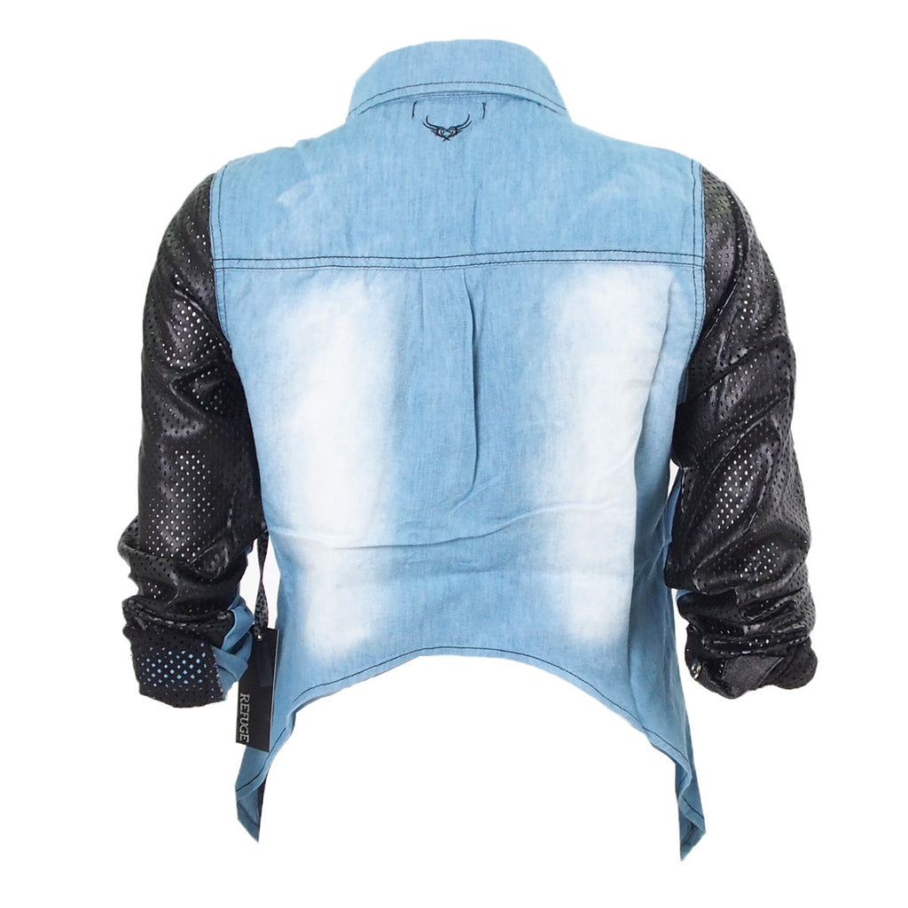 Woven PU leather look sleeves and detailing